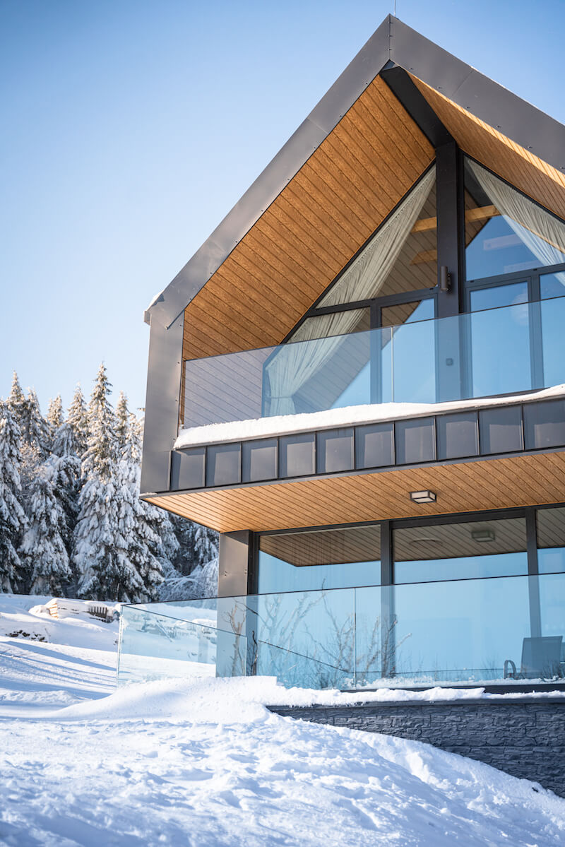 Wszystkie materiały wykończeniowe dobrane zostały w taki sposób, aby bezproblemowo znosić ciężkie warunki atmosferyczne, które są codziennością w Zieleńcu.